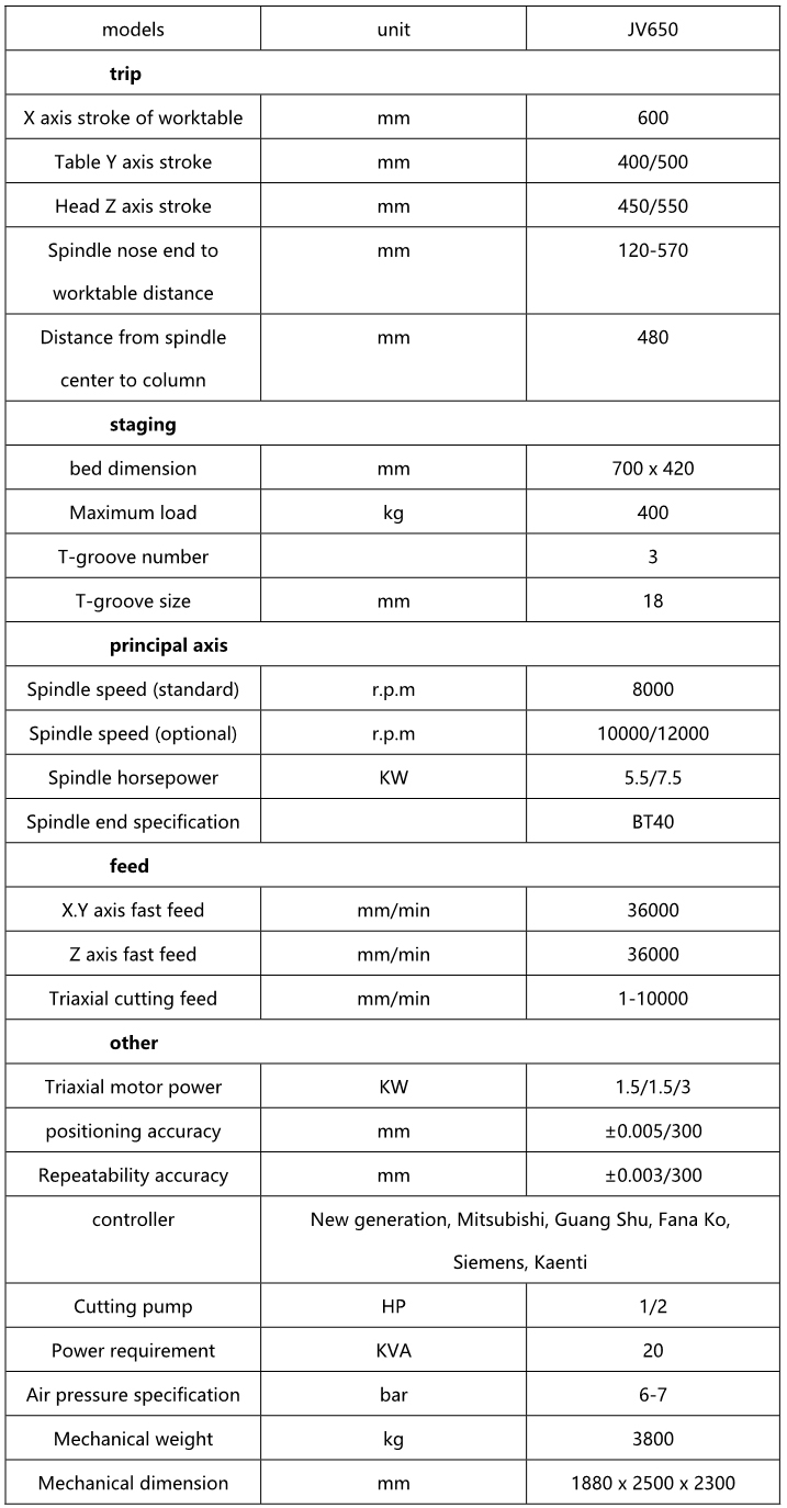 ★JV series machines, in addition to the good spindle function, more high-speed, high efficiency injection of excellent ATC, tool change speed and fast displacement speed.